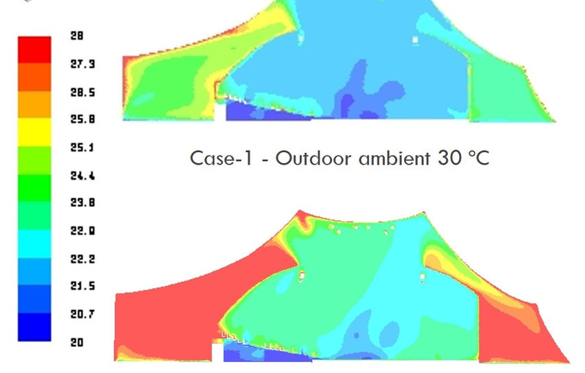 At n early stage, an design limitation was highlight through the use of the CFD model. The model of the system design limitation in the form of the airflow from the ducted supply air at low level. The cooler air at lower levels provided reduced temperatures at the lower teirs of steating hwoever, the system did not have this effect at higher levels of the seating platforms.